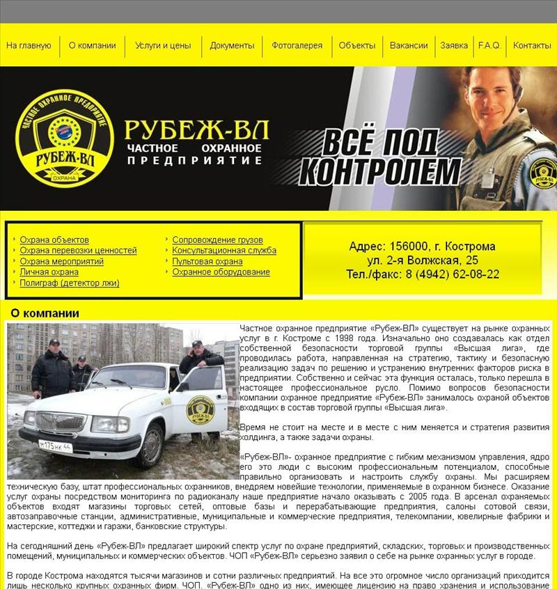 Корпоративный сайт ЧОП "Рубеж-ВЛ"